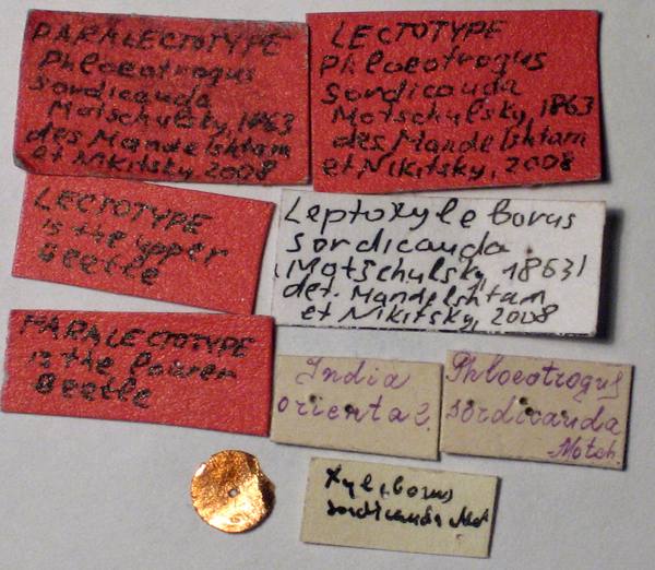 | Leptoxyleborus sordicauda, lectotype lables. |